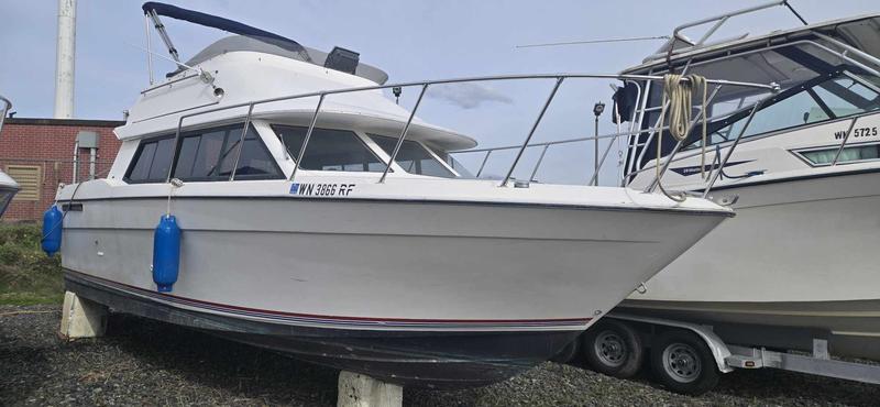 This is a very clean 2858 with operational fly-bridge, newer upholstery, newer flooring, newer gauges / front helm screen, and well maintained interior. The engine is a 5.7L Mercruiser paired to a Bravo 3 duo-prop outdrive. This is ready for the Puget Sound and Pacific North West. We highly recommend seeing this in person to appreciate.