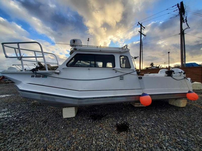 This boat is a heavy water capable 26′ Aluminum Chambered Boat with 1yr old Honda 150’s, new Garmin electronics package with 12″ screen, VHF/AIS radio, radar and digital gauges. Twin Scotty DownRiggers included.