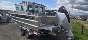 A water ready 24’0″ San Juan Landing Craft by Silver Streak. This boat is powered by a single 350hp V8 Honda that is built like a tank, and ready for the PNW adventures. Dual helm seats on back saver suspension pedestals with twin bench seats. Rear sliding door, front and aft wash down hose, Scotty 1106B Downriggers wired and ready to go.